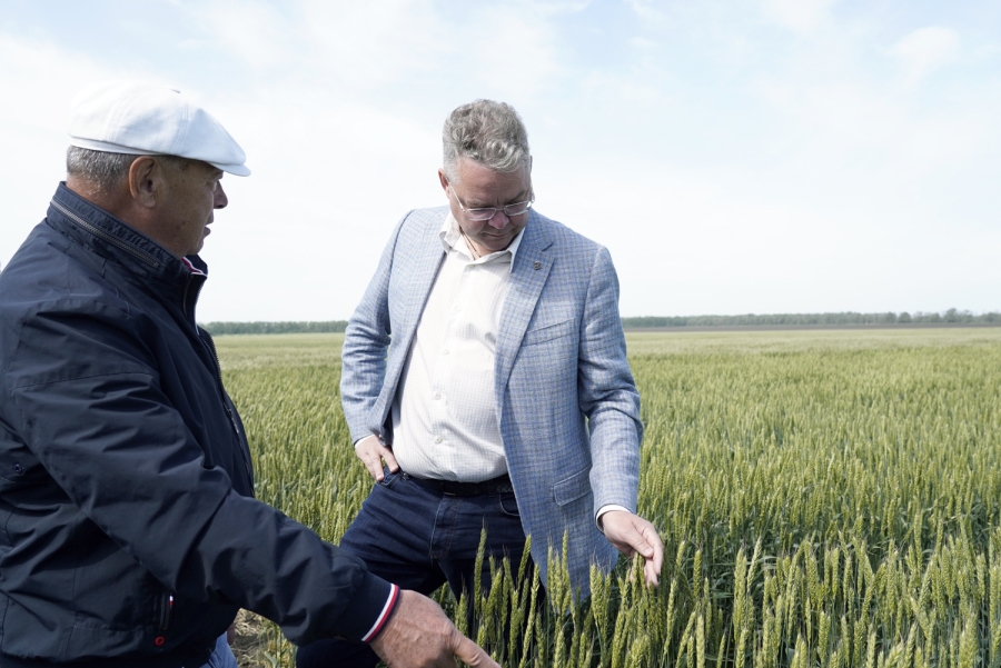 На полях Северо-Кавказского федерального научного аграрного центра Губернатор осмотрел посевы опытных образцов пшеницы.