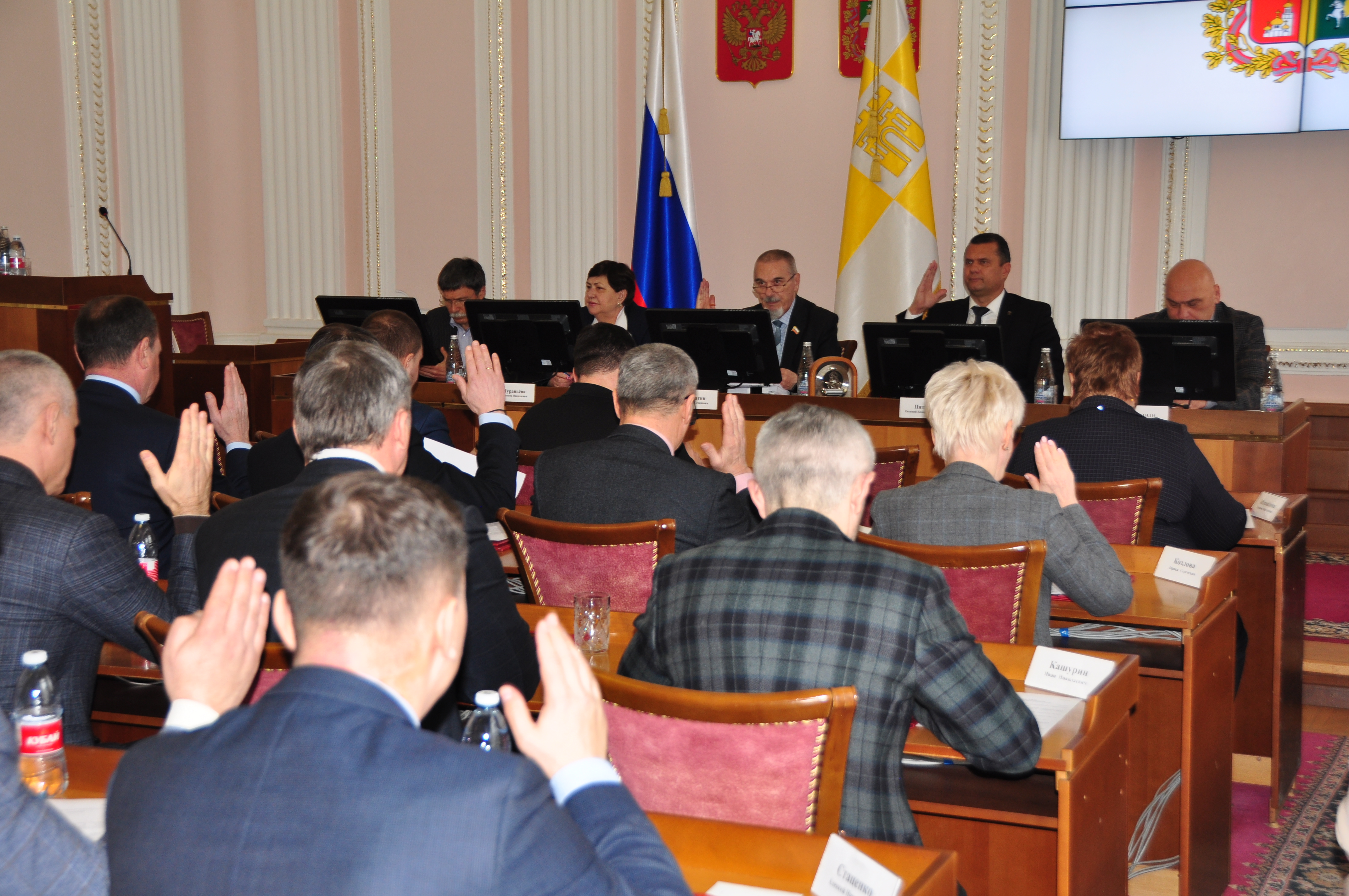 В Ставропольской городской Думе прошло заседание под председательством спикера Георгия Колягина. В его работе участвовали первый зампред краевого парламента Дмитрий Судавцов, депутат Думы края Валентина Муравьева, прокурор города Ставрополя Антон Жуков, председатель региональной Общественной палаты Георгий Нефетиди, другие официальные лица.