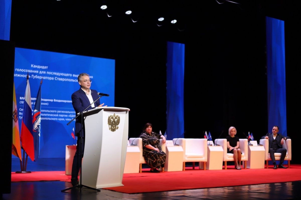 Секретарь регионального отделения «Единой России», Губернатор Ставропольского края Владимир Владимиров в своём докладе отметил, что за последние 5 лет в ряды Партии вступили более 5000 человек, а в команду сторонников прибыло более 4000 человек. В числе важнейших направлений работы реготделения остаётся: поддержка участников СВО и членов их семей, выполнение народной программы и партийных проектов «Единой России».